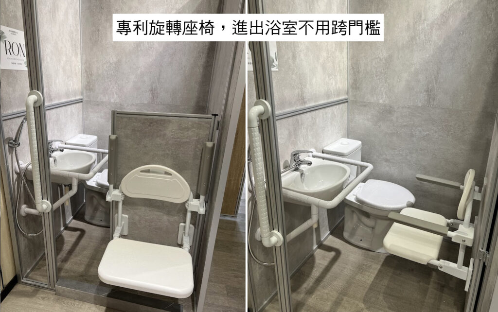 創新旋轉式座椅,在門外入座,免跨門檻安全輕鬆進入浴室