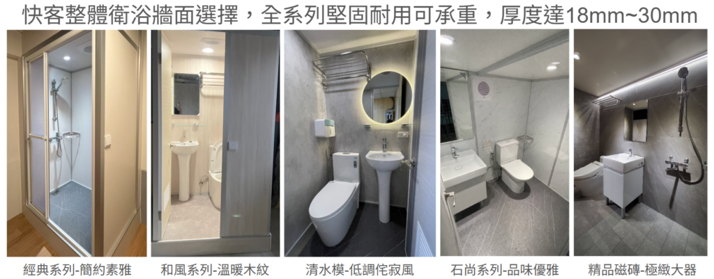 領先業界的結實牆板,超厚18mm防水基材,全系列可直接鎖掛件、裝設無障礙扶手