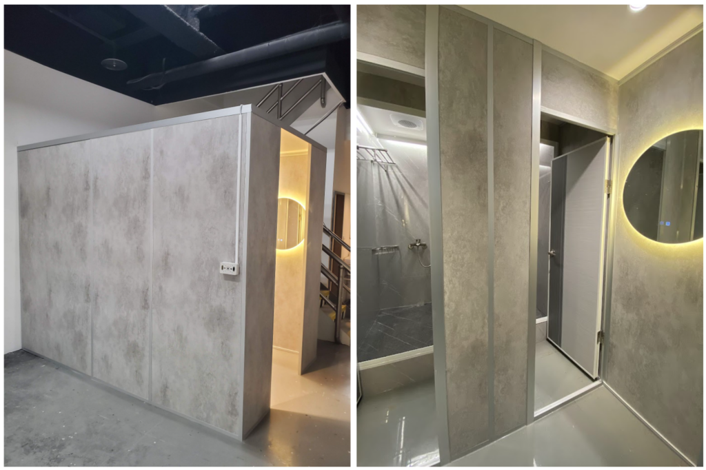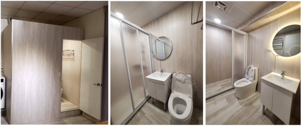 | 顏色 | 白橡/清水模 兩色 | 採用全防水PVC貼皮,表面無毛細孔,霉根不易生長好清潔 |